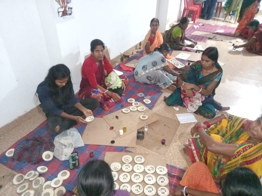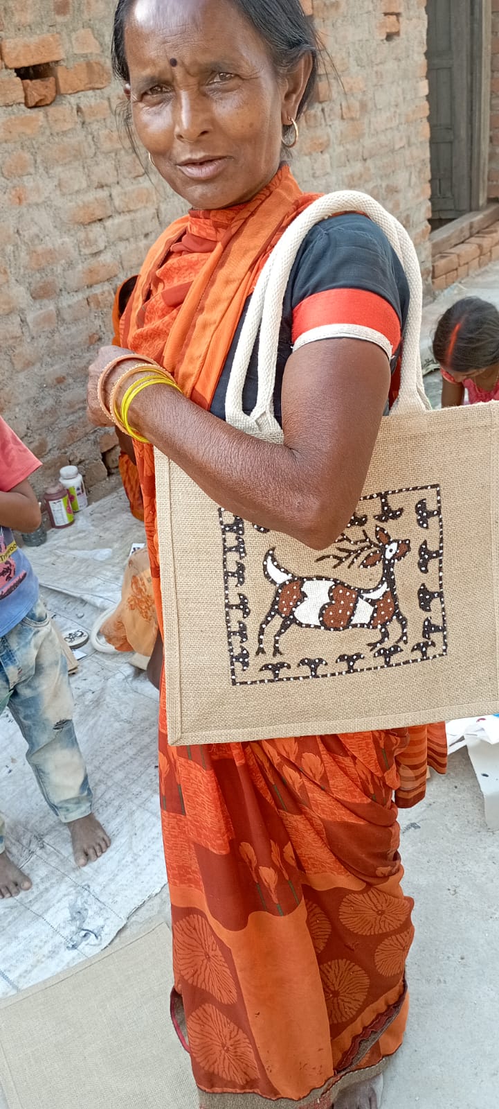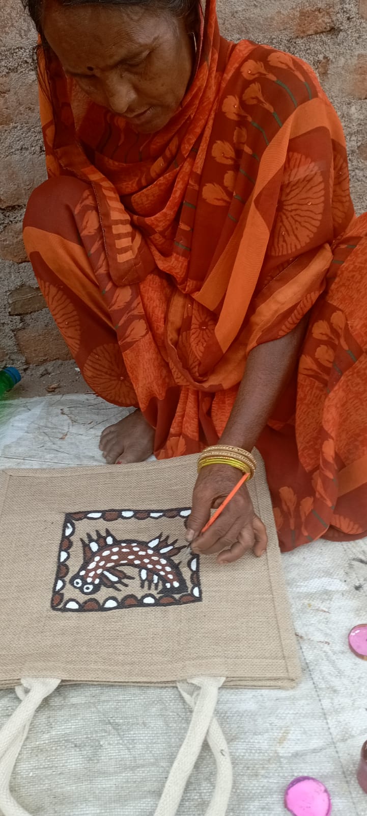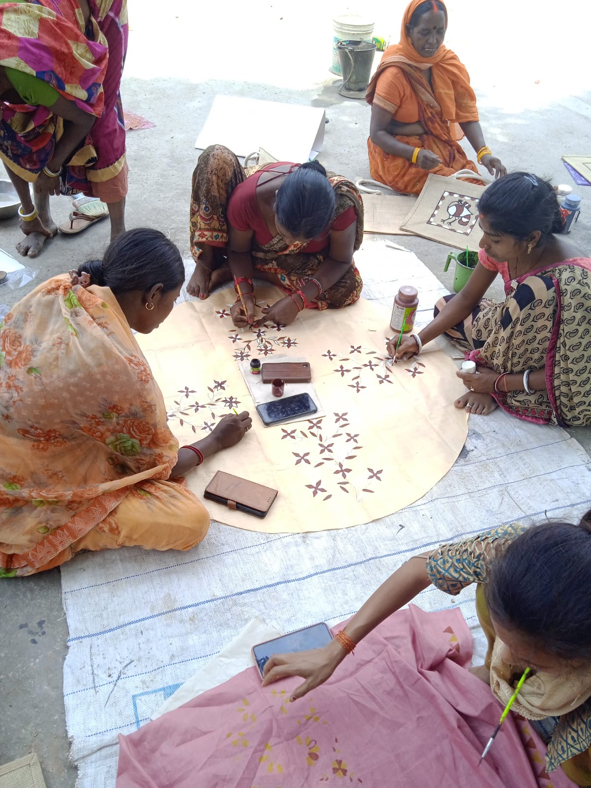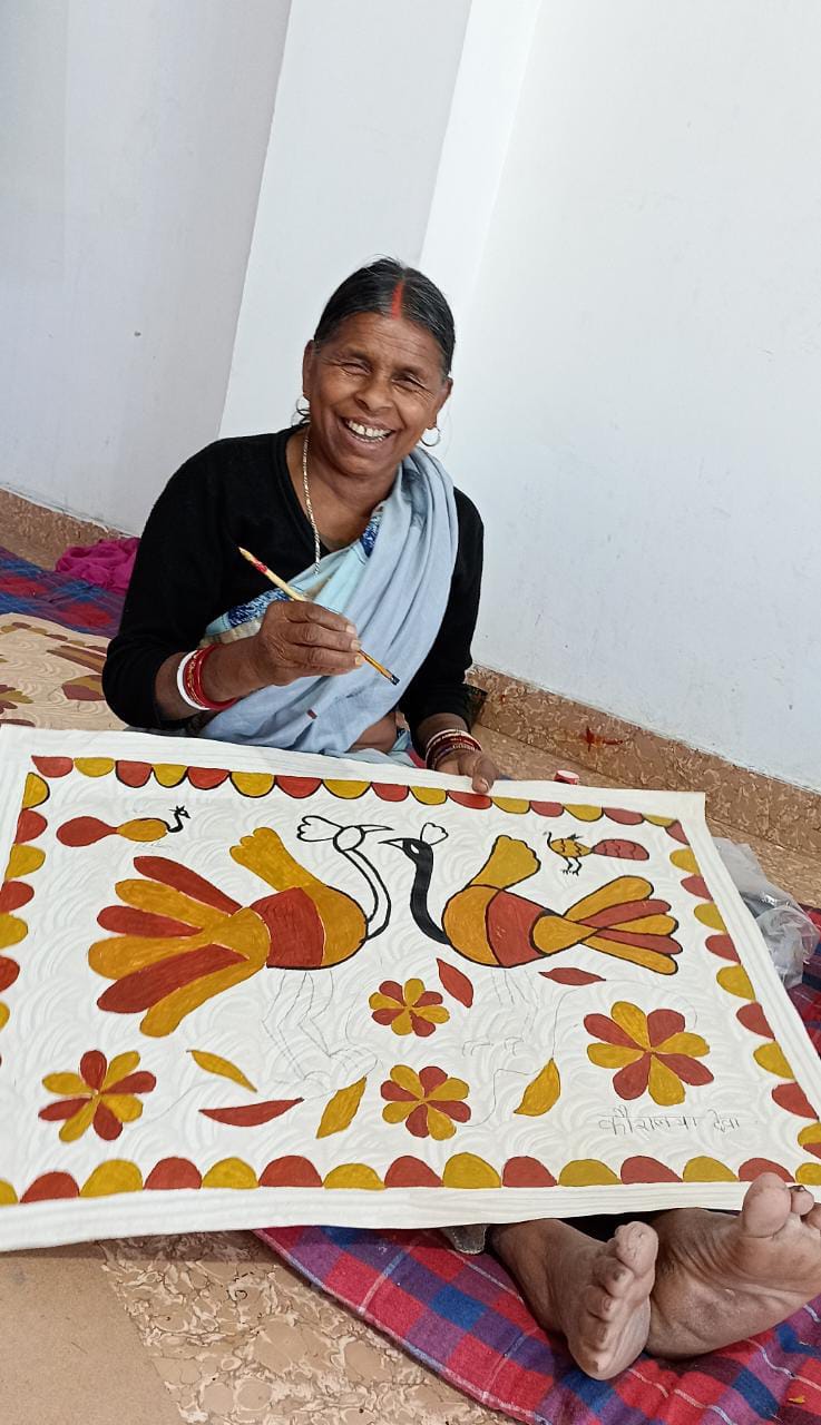 Sajwa Devi, an old artisan, found her life transformed through the Sohrai Kohvar art training. Armed with her existing skills, she began creating vibrant art pieces that beautifully depicted the cultural heritage of her village. However, Rajeshwari’s impact extended beyond her artistic achievements. Recognizing the importance of the art, she started to mentor new generations with the techniques & stories of the art behind to support & flourish the art to a wider audience. Through her dedication and generosity, several trainees who once struggled to do fine bold lines & strokes in the painting are now thriving in the art. Her commitment to empowering the next generation has earned her the respect and admiration of her community. She soon visualize to open a local shop at her home to showcase the sohrai kohvar contemporary products that her community learned during the SIDBI training, like the Raghu Rajpur Orissa village. & later in Hazaribagh & Ranchi with the help of Govt or district administration.